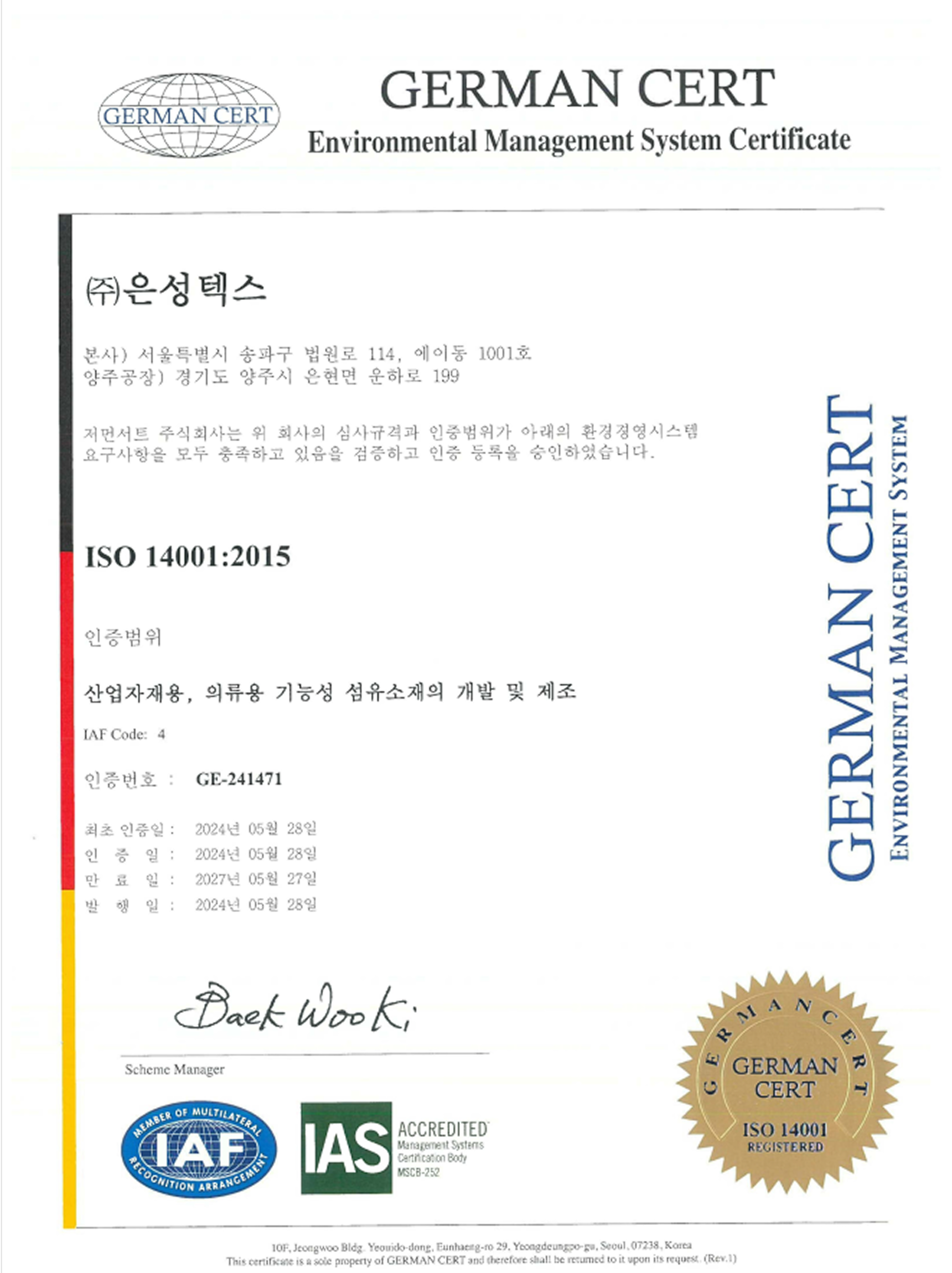 은성텍스는 재생 소재 사용과 친환경 공정 도입을 통해